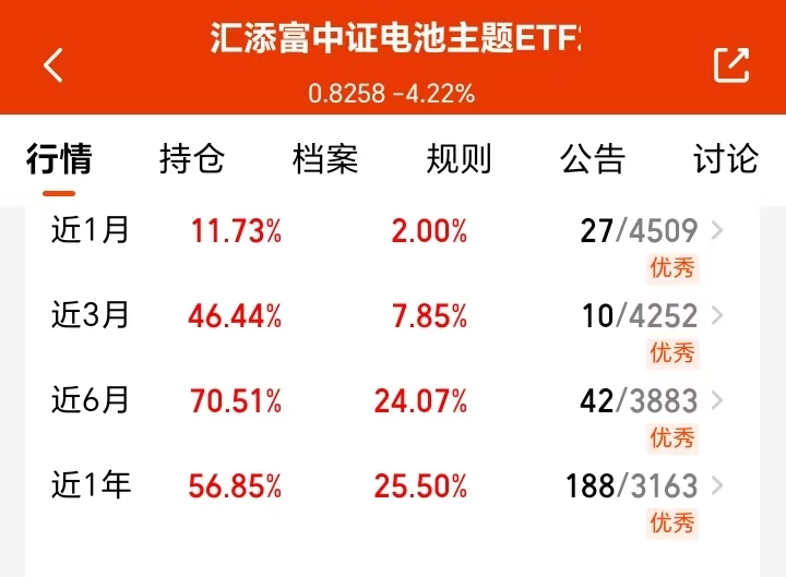 越研究越笃定,现在的电池板块就像前期的CPO和芯片,妥妥的潜力王,宁德时代、阳光电源、亿纬锂能、先导智能这“四天王”表现也亮眼。我前期入手的$汇添富中证电池主题ETF发起式联接C(OTCFUND|012863)$太香了!