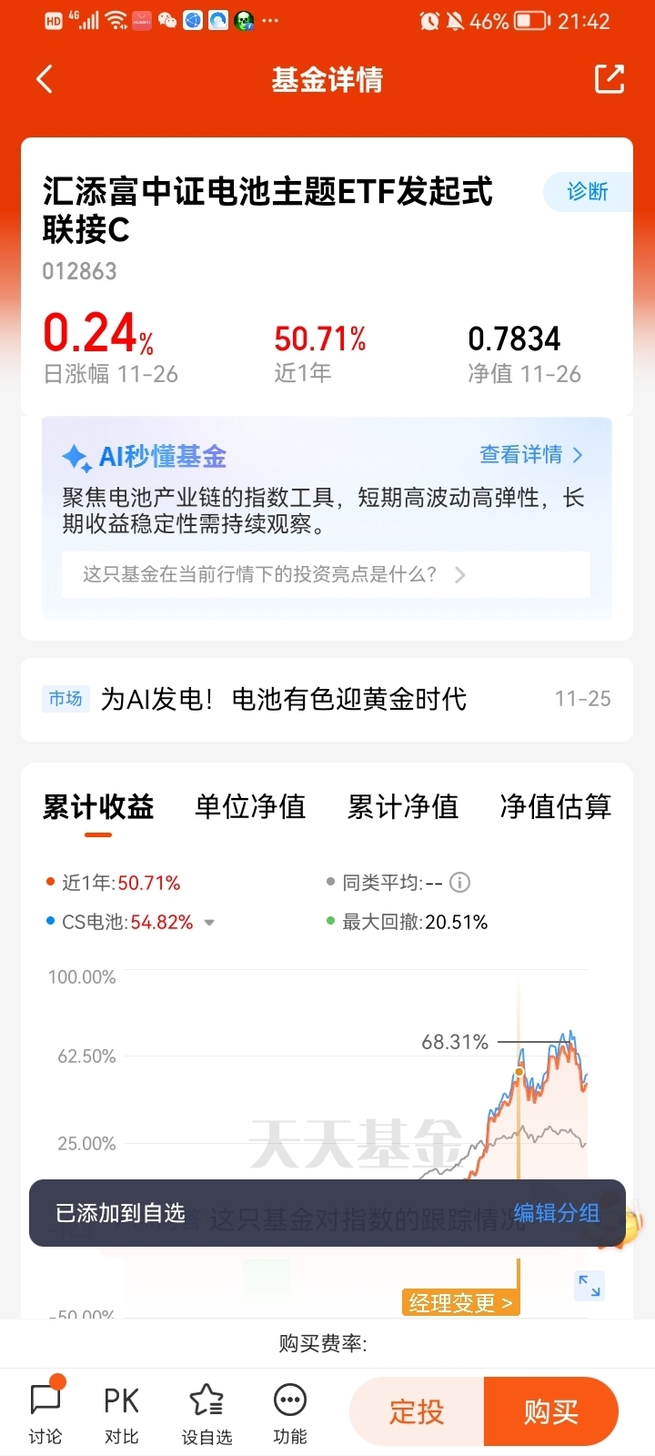 值得关注。$汇添富中证电池主题ETF发起式联接C$