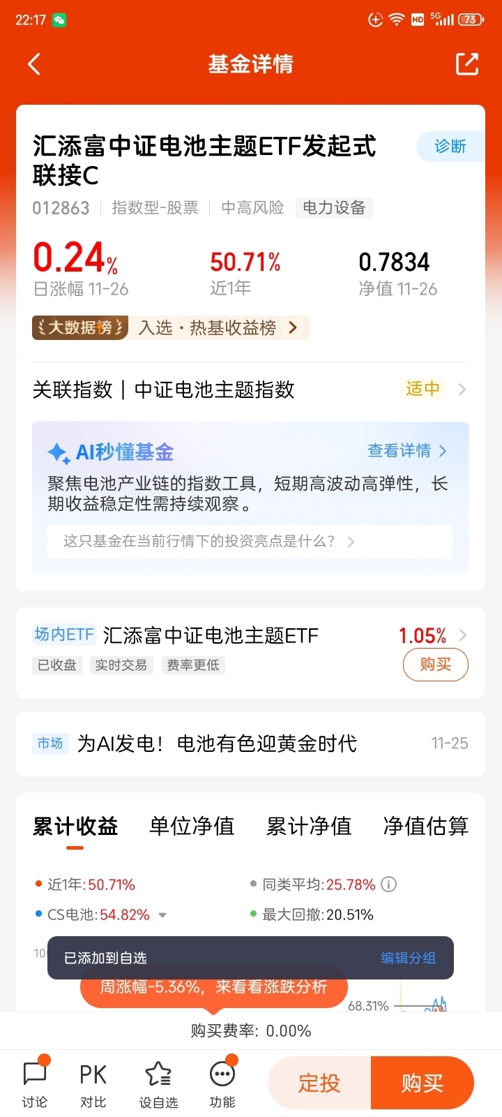 汇添富中证电池主题ETF发起式联接C(OTCFUND∣012863)就是你的好帮手。$汇添富中证电池主题ETF发起式联接C$