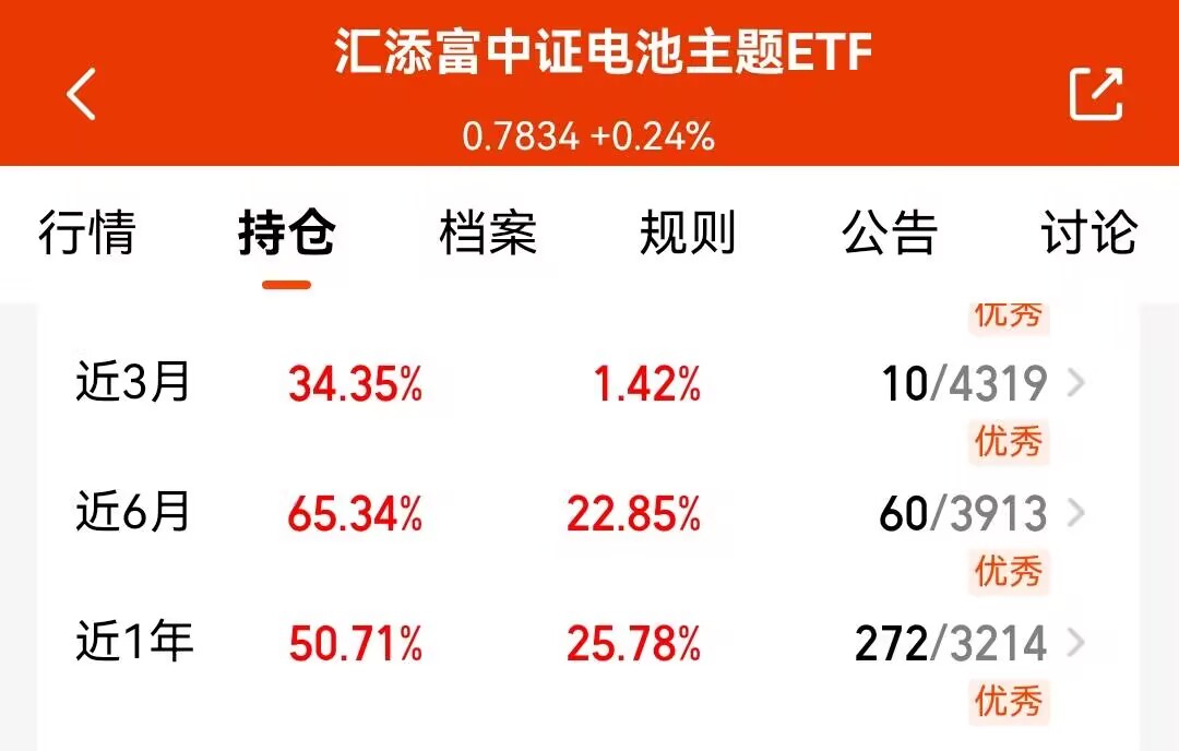 $汇添富中证电池主题ETF发起式联接C(OTCFUND|012863)$跟踪中证电池主题指数,精选50家锂电全产业链龙头,精准布局储能+固态双主线。指数储能含量达26%,同类,固态电池含量达42%,将充分受益于储能+固态电池双轮驱动下的配置性机遇。而且综合费率仅0.45%,是同类最低!最具性价比。我接下来还会看情况再拿些筹码。