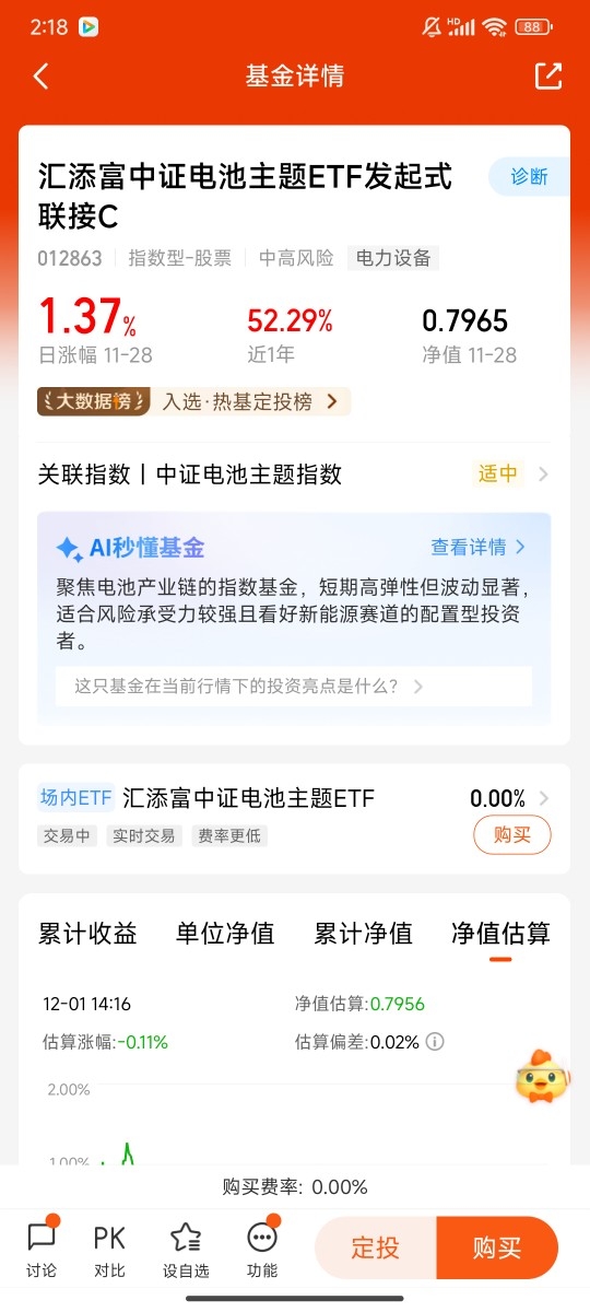 $汇添富中证电池主题ETF发起式联接C$ #晒实盘# @天天基金创作者中心