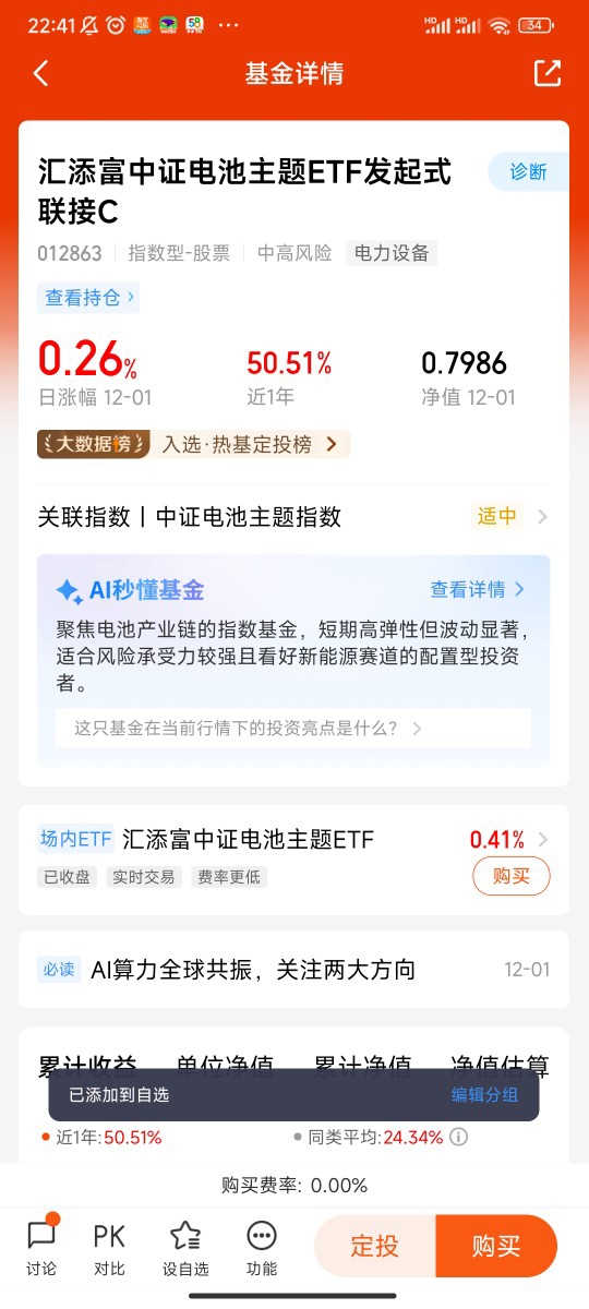 #汇财友道# #观点搭子团火热招募中!# $汇添富中证电池主题ETF发起式联接C$ #晒收益#