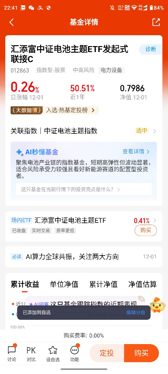 #汇财友道# #观点搭子团火热招募中!# $汇添富中证电池主题ETF发起式联接C$