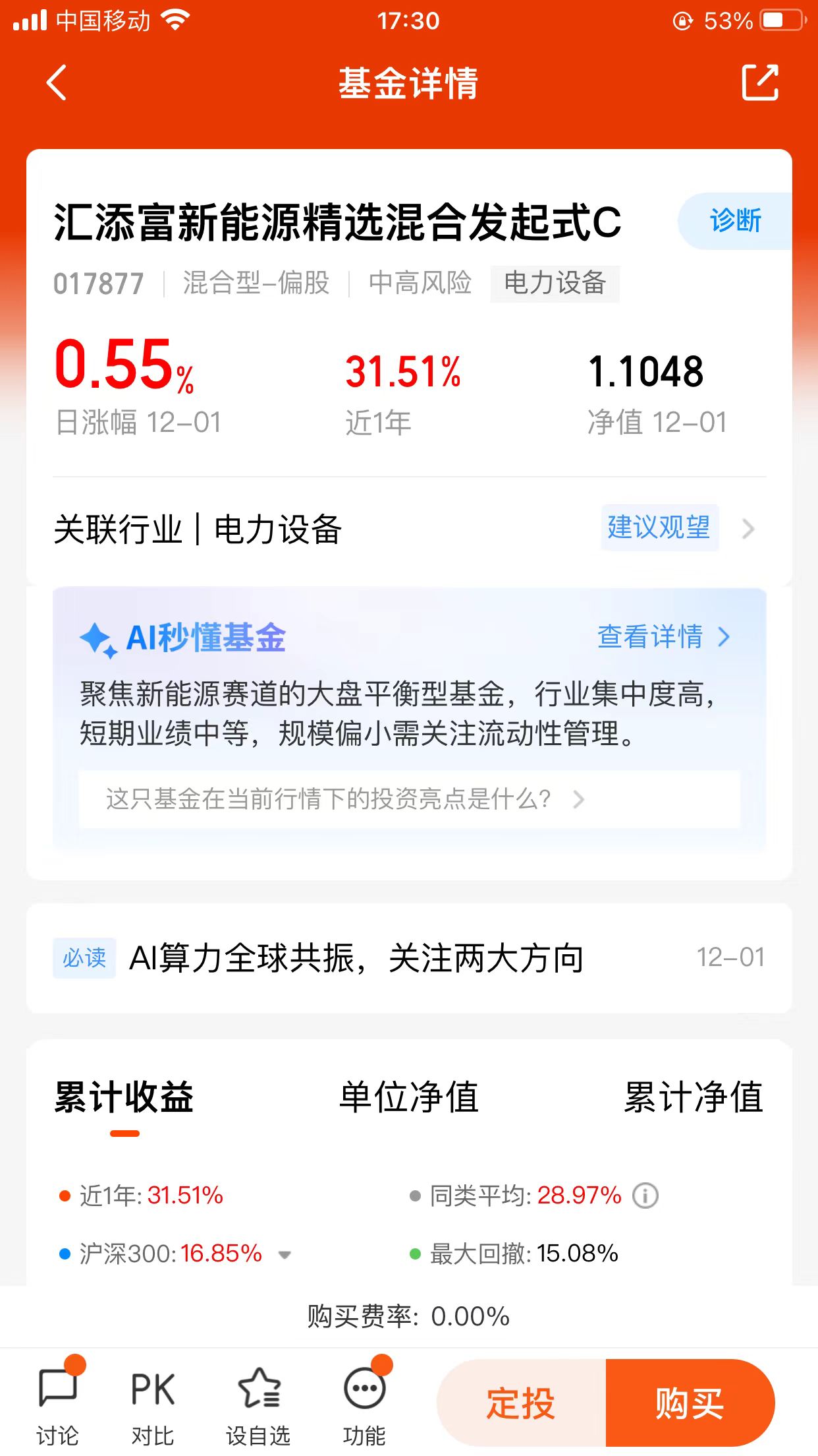 流动性设计:申购费为0,持有7天后赎回免手续费,适合短线波段操作或定投策略。