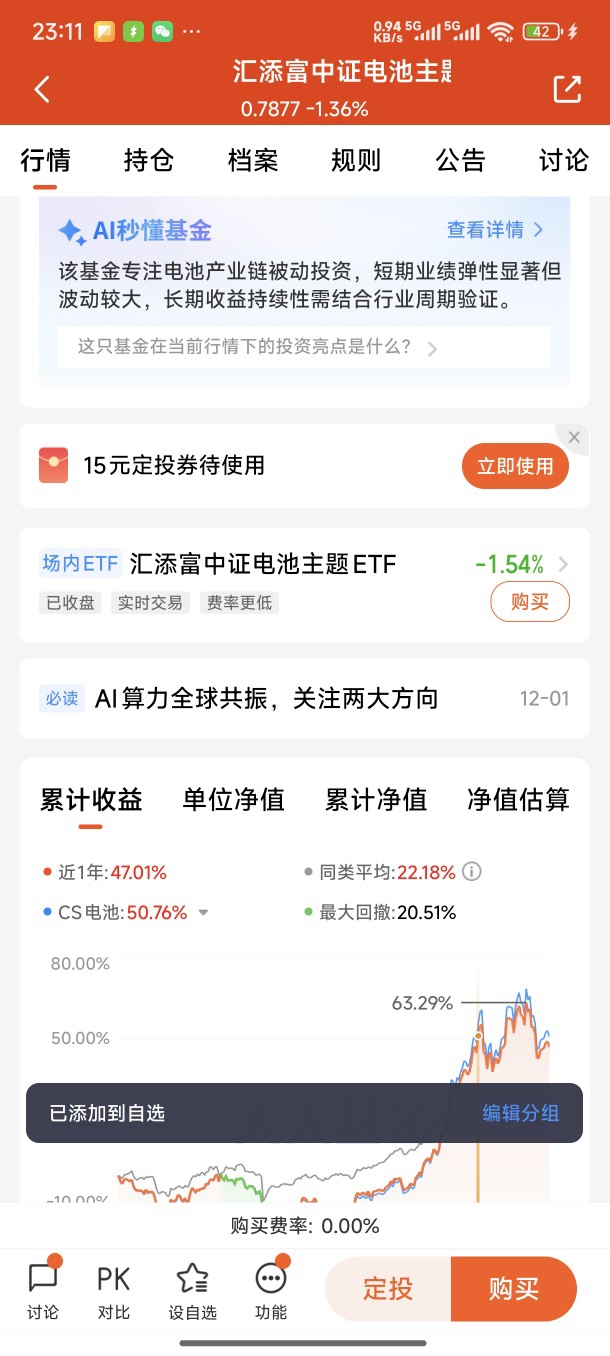 #观点搭子团火热招募中!# #汇财友道# $汇添富中证电池主题ETF发起式联接C$