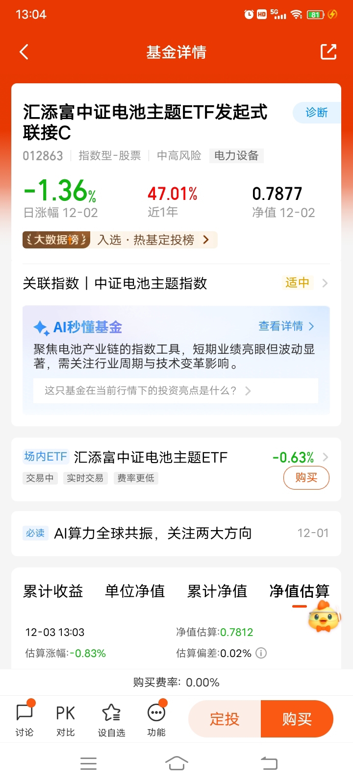 我看好$汇添富中证电池主题ETF发起式联接C$!我始终认为当前新能源板块投资价值