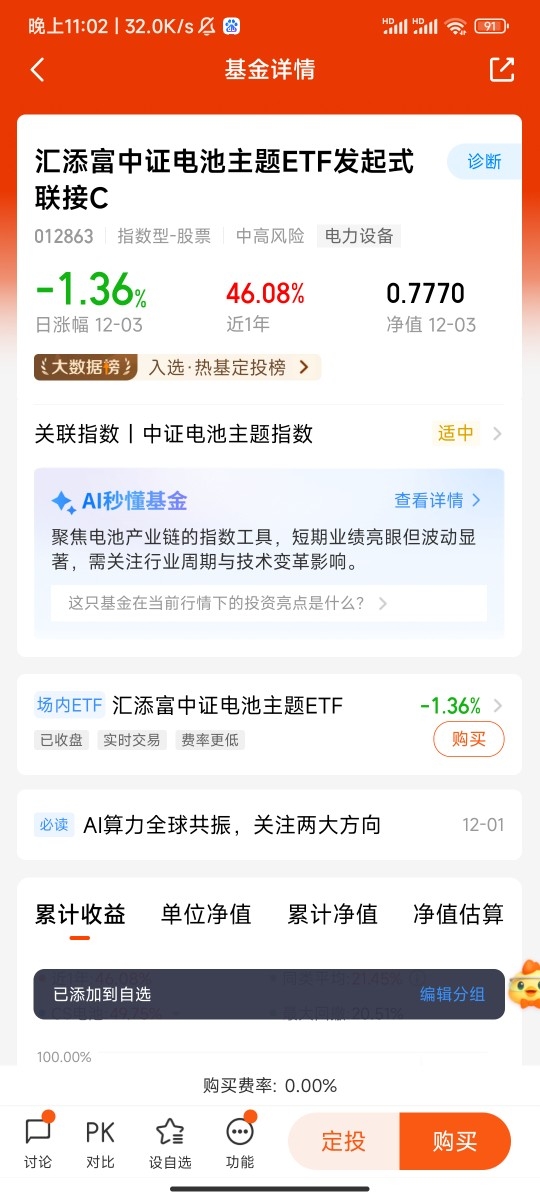 $汇添富中证电池主题ETF发起式联接C$