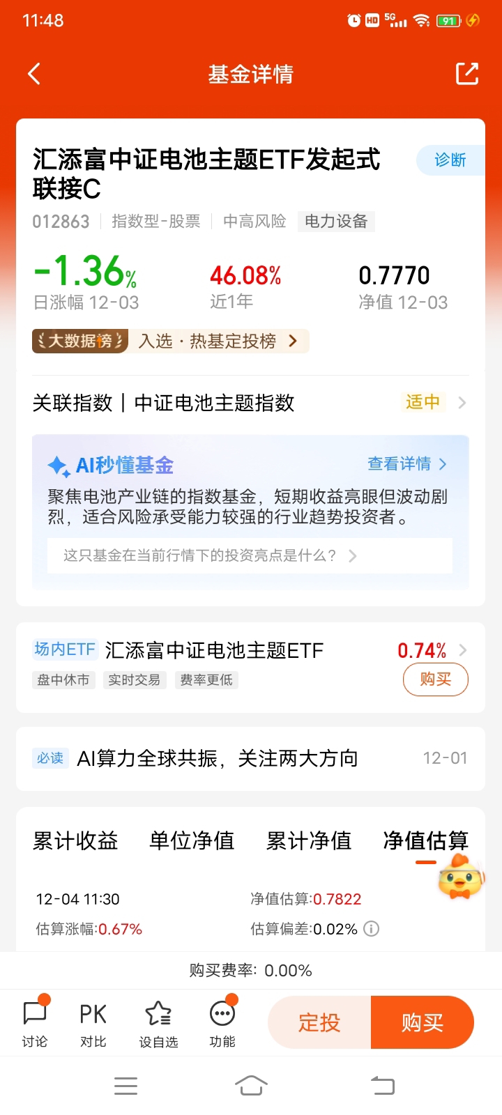 我看好$汇添富中证电池主题ETF发起式联接C$!我觉得当下新能源板块的投资价值相