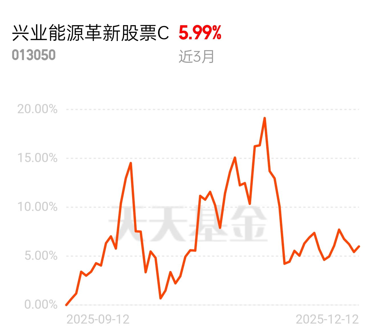 光伏电池转换效率突破 25%,度电成本低至 0.1 元,分布式光伏装得越来越多。兴业能源革新 C 是主动管理型,不跟指数死板配置,近 3 个月涨 5.99%,精准抓技术突破带来的机会。$兴业能源革新股票C$