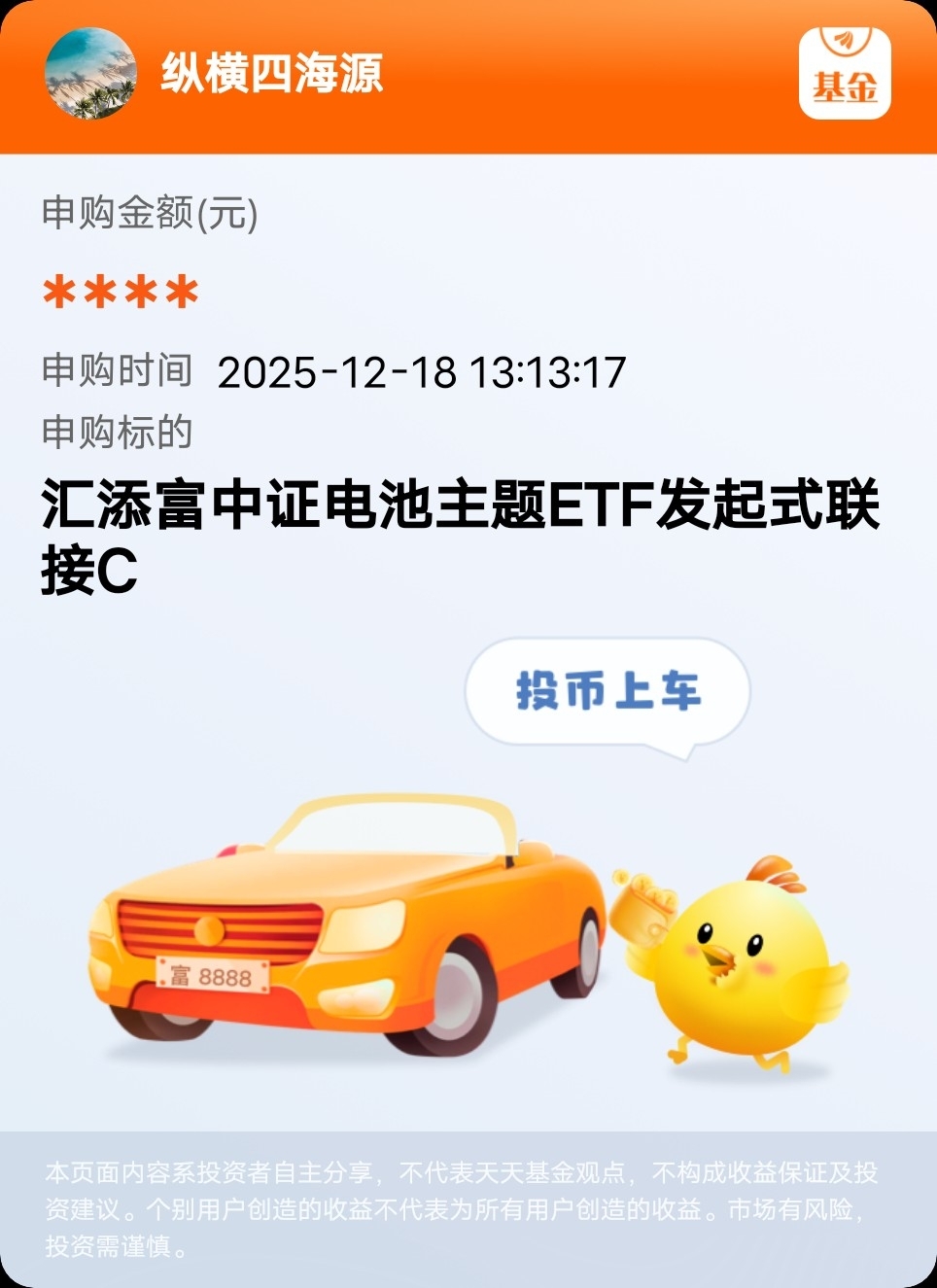 有回调就继续努力加仓干$汇添富中证电池主题ETF发起式联接C$