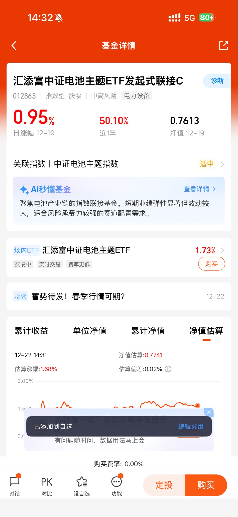 作为一名偏爱稳健配置、追求风险收益平衡的投资者,在梳理新能源赛道的布局标的时,汇添富中证电池主题ETF发起式联接C,成了我眼中兼具赛道潜力与配置便捷性的优质选择。