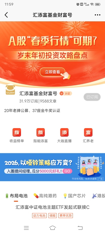 当然,我也清楚电池板块属于中高风险领域,这只指数基金虽聚焦赛道但也存在波动风险,不过它的风控逻辑让我相对放心。作为跟踪中证电池主题指数的指数型基金,它通过分散投资电池产业链的优质企业,避免了单一标的暴雷的风险;且指数化投资的方式,能紧密贴合板块整体走势,不会因基金经理的主观操作出现过大偏差。另外,基金的费率设计也比较友好,C类份额购买费率为0,适合长期定投摊薄成本。结合2026年A股的投资逻辑,内需政策落地前市场更看重业绩确定性,而电池行业依托技术升级和海外需求,盈利修复逻辑扎实,属于“可见红利”板块,与我今年“坚守确定性、把握业绩增长回报”的投资思路高度契合。所以即便板块可能存在短期震荡,我也会坚持定投,跟着产业发展的节奏,耐心持有等待更多收益兑现。#2026新年投资祝福暖心寄语# #2025年A股沪指收盘点位大猜想# #2025即将收官 明年怎么投?# #挖掘超额收益# #【跨年坦白局】提问金梓才、陈果# #青禾创作计划# @汇添富基金 @天天基金创作者中心