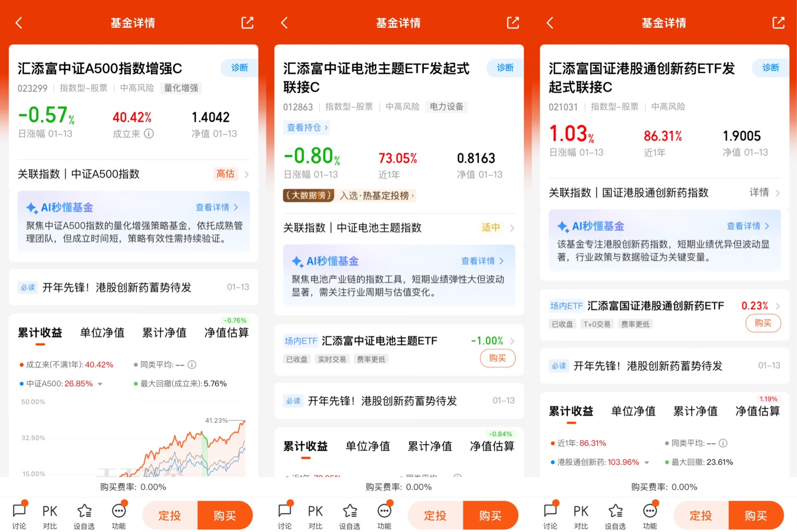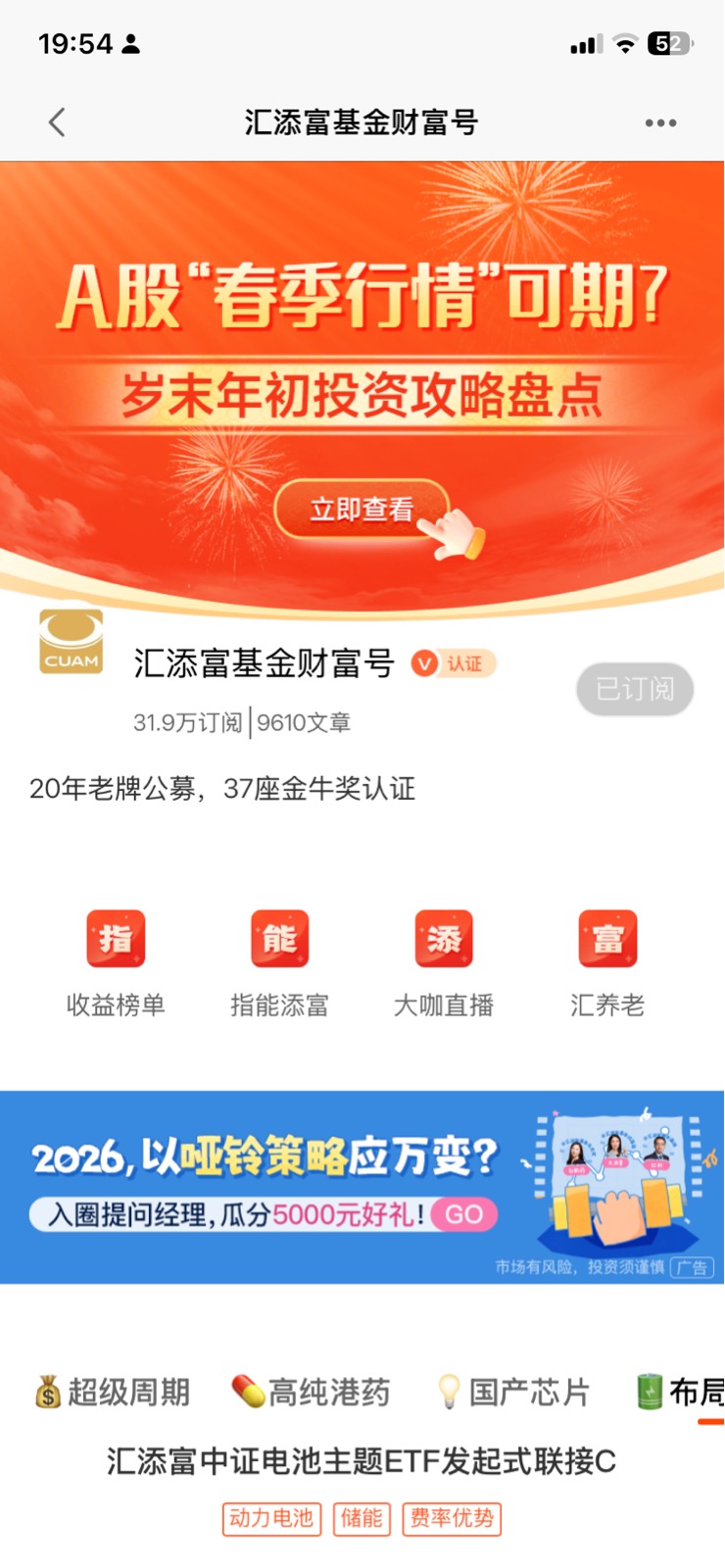 相关基金的持有体验:我非常信赖汇添富基金,目前定投持有$汇添富中证电池主题ETF发起式联接C$ $汇添富中证全指软件ETF发起式联接A$$汇添富黄金及贵金属(QDII-LOF-FOF)C$ 等十多只基金,获得了非常好的收益回报和持有体验!我会继续定投,并长期持有!@汇添富基金