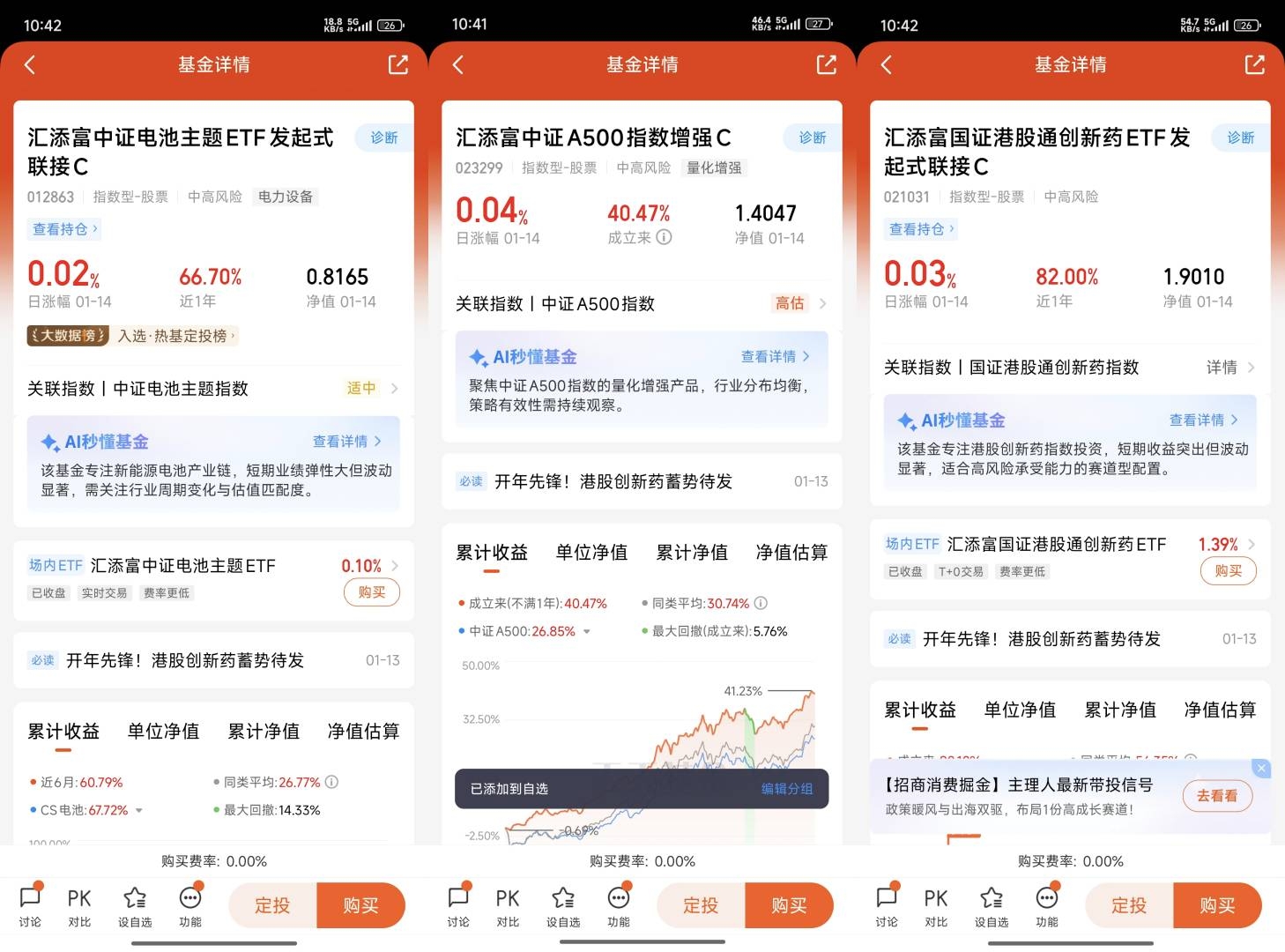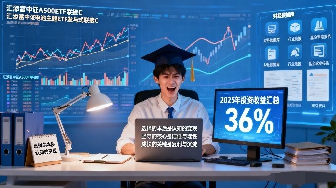 投资中没有无缘无故的盈利,每一次精准选择的背后,都是深度研究的支撑。选择汇添富中证A500ETF联接C,我研究了指数的行业分布、估值水平、成分股质量;选择汇添富中证电池主题ETF发起式联接C,我分析了行业景气度、指数构成、基金管理人实力。作为新手,我深知自己缺乏市场经验,因此格外注重“用数据说话”,通过财经数据库、行业研报、基金季度报告等渠道积累认知,让每一次选择都有迹可循。