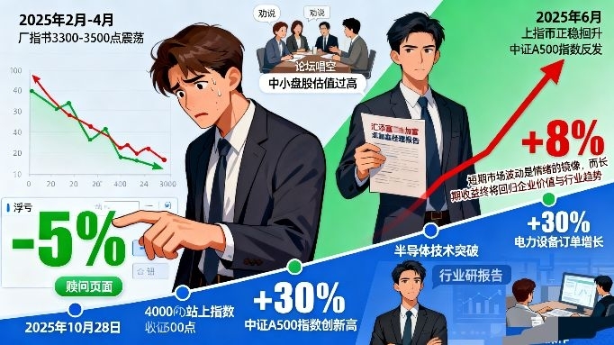 买入基金后的前三个月,市场给我上了生动的一课。2025年2月至4月,沪指在3300点至3500点之间反复震荡,中证A500指数也随之波动,3月中旬时,我的基金浮亏一度接近5%。那段时间,我每天早上睁开眼第一件事就是看净值,绿色的亏损数字像小石子一样硌在心上,身边同事劝我“及时止损”,论坛里也不乏“中小盘股估值过高”的唱空声音,我甚至好几次点开了赎回页面,手指悬在屏幕上迟迟不敢按下。