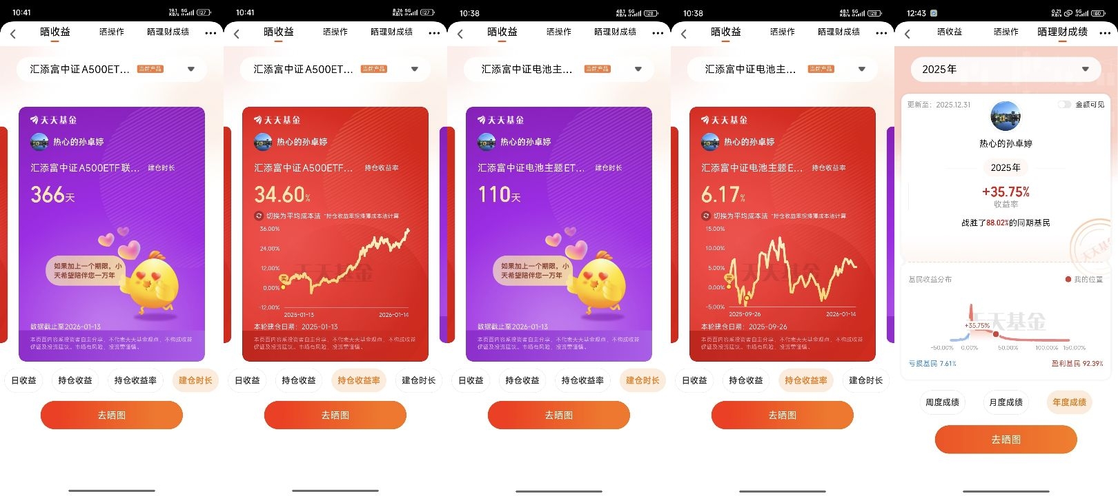 站在2026年的起点,沪指十年新高的荣光已成为过往,我的投资旅程才刚刚扬帆。我依然持有这两只汇添富基金,它们就像我职场初期的“财富伙伴”,见证着我的成长与蜕变。我深知,未来的市场依然会有风浪,投资之路也不会一帆风顺,但2025年的经历已经教会我:只要选对靠谱的伙伴、保持深度的认知、坚守理性的初心,笃行不怠,就一定能在时间的长河中收获属于自己的风景。