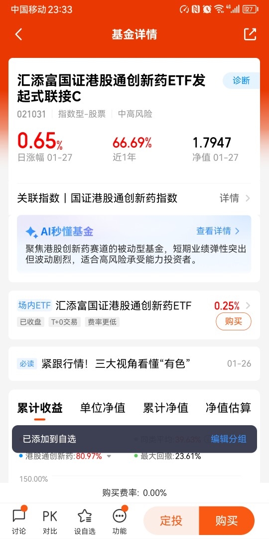 $汇添富国证港股通创新药ETF发起式联接C$ 也是2025年中的时候接近翻倍,目前已经回调几个月,买入性价比进一步提高!