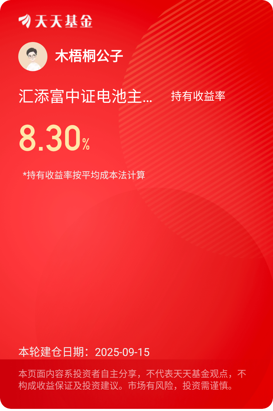 1.择时精准:2025年9月15日买入恰逢电池板块新一轮上涨周期起点,9月下旬至11月板块涨幅显著,8.3%收益率跑赢了同期多数权益类基金。