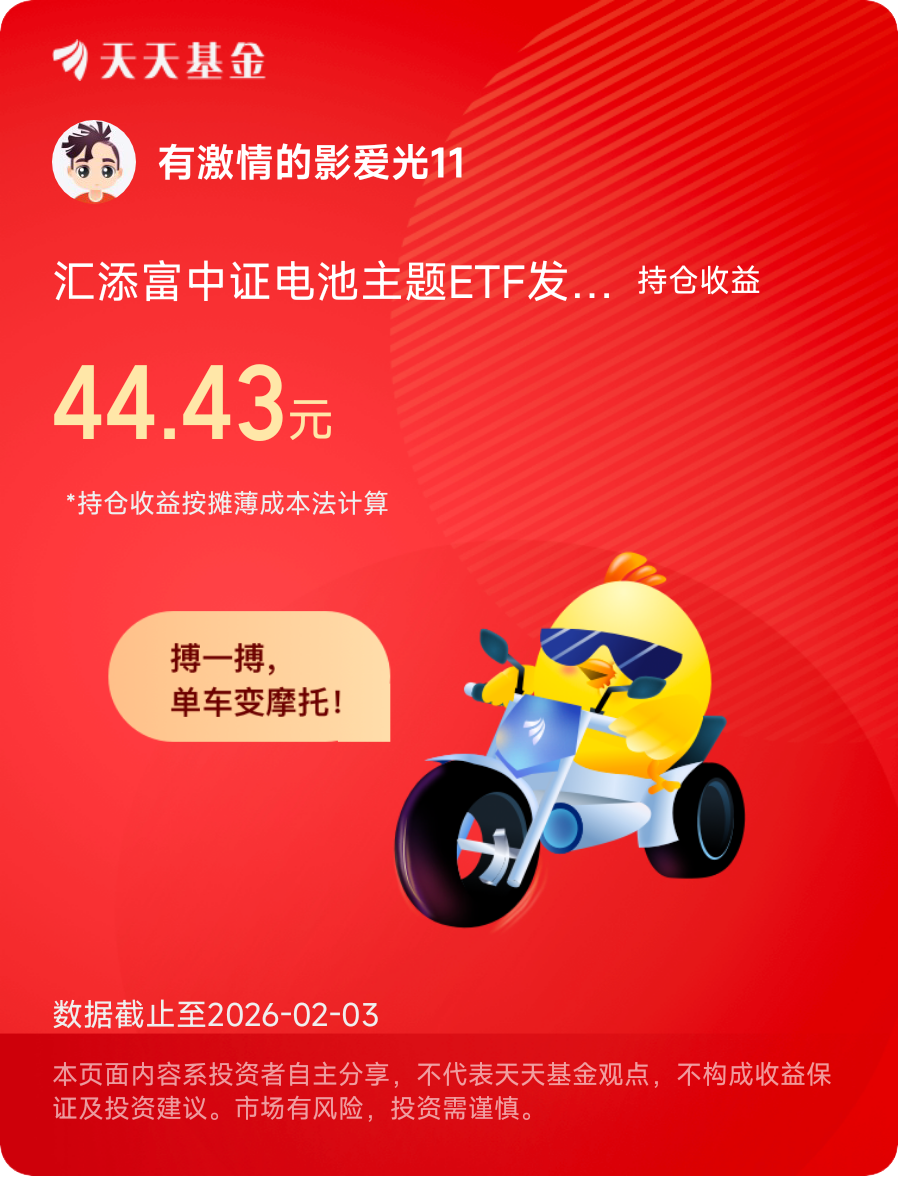 2025年的投资记忆已经落幕,但新能源赛道的故事还在继续。新的一年,固态电池的商业化落地、储能需求的持续增长,仍将为电池板块带来新的增长点。而我,也会继续持有汇添富中证电池主题ETF发起式联接C,带着2025年的投资感悟,在能源转型的长期赛道上,继续坚守与前行。我相信,只要方向正确,慢一点、稳一点,终会抵达理想的彼岸。@汇添富基金 @攒钱买黄金 @讨厌的金礼杰4