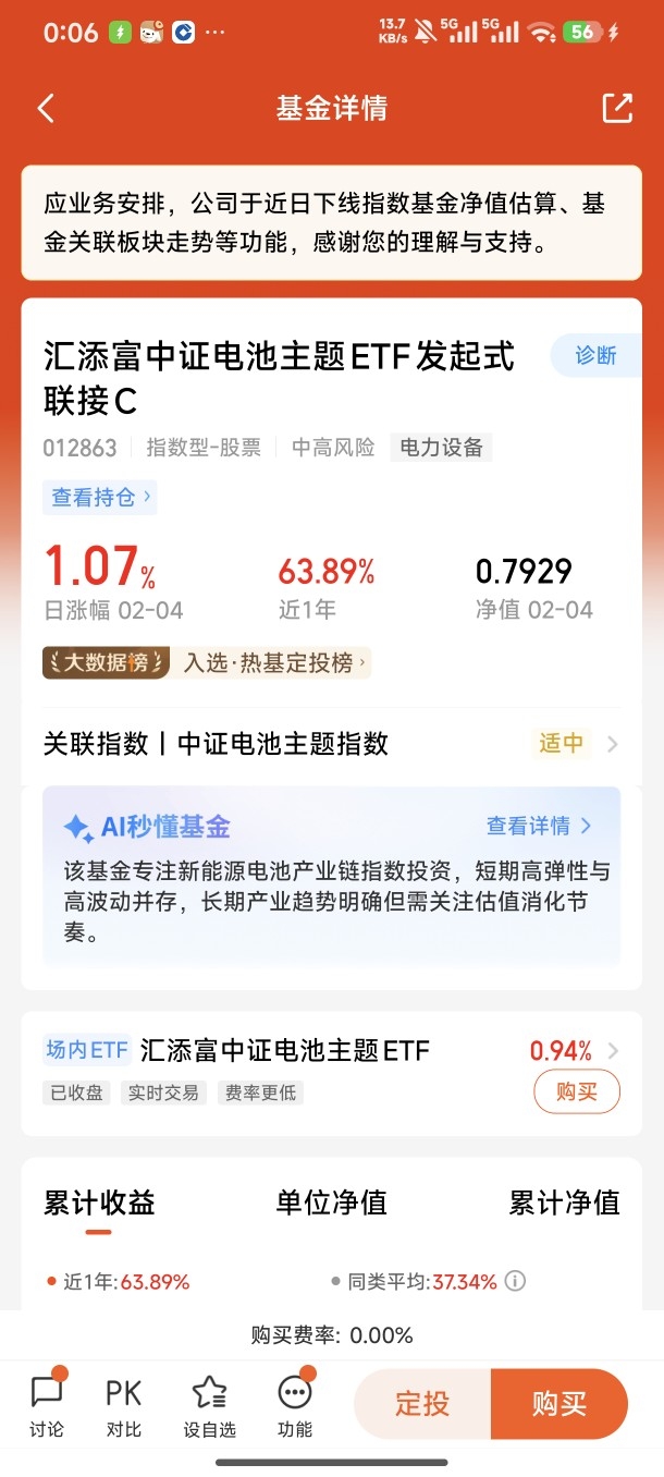 $汇添富中证电池主题ETF发起式联接C$ #晒收益#