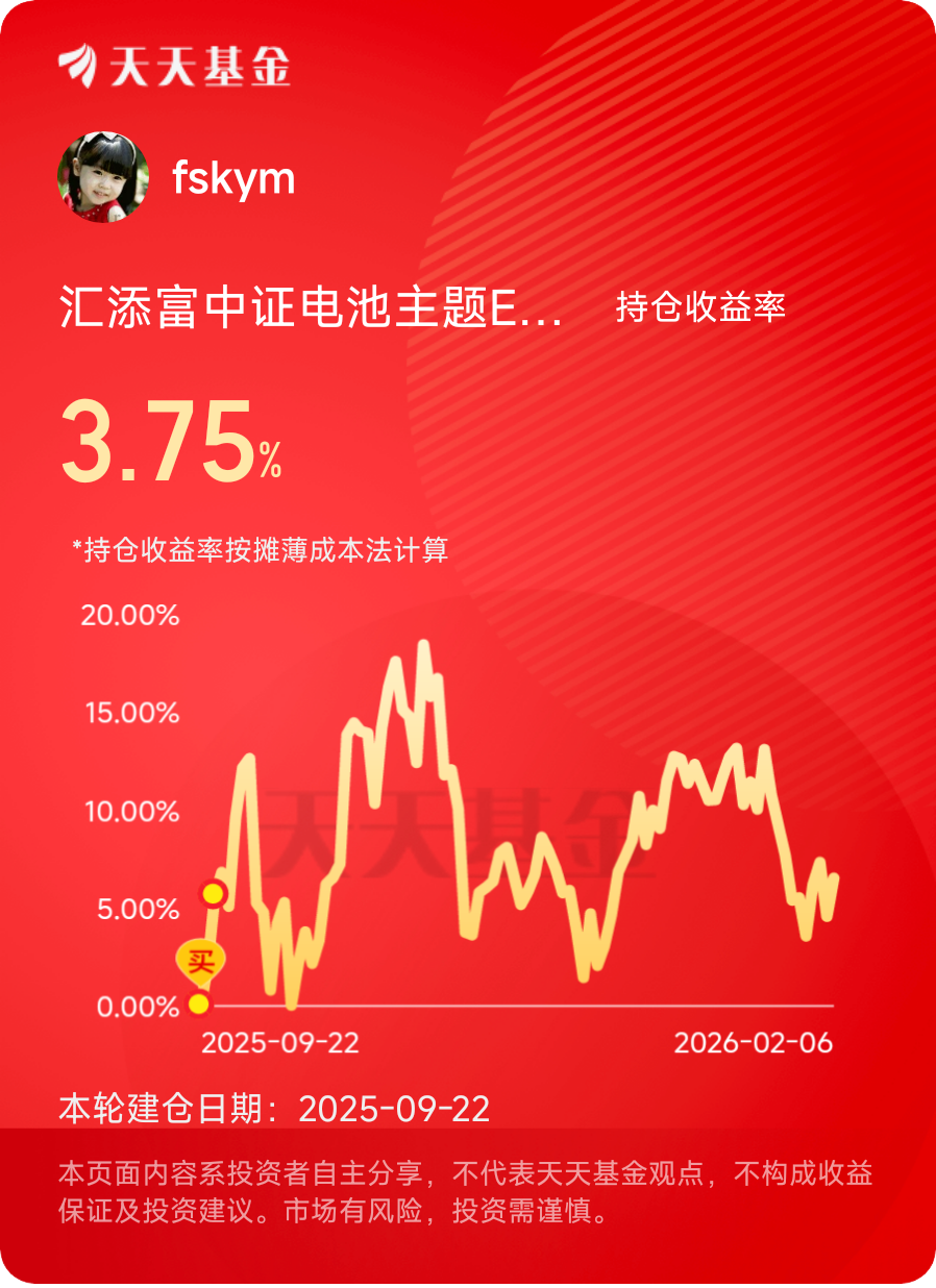 2025年最让我记挂、也最有感悟的投资,就是汇添富中证电池主题ETF发起式联接这只基金。它不是全年最猛的那只,但绝对是最能教会我“周期、耐心、布局”的一笔持仓,全程跟着它走完一年,真的像上了一堂完整的投资课。