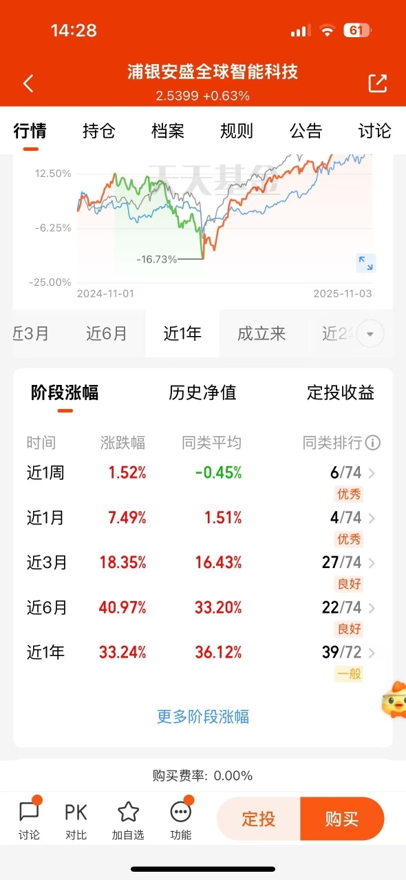 投资美股是一场财富长征,可以3-5年长期持有浦银安盛全球智能科技,开启周定投就当变相养成存钱习惯了,想乱花钱的时候往里充值满足消费欲$浦银安盛全球智能科技(QDII)A$