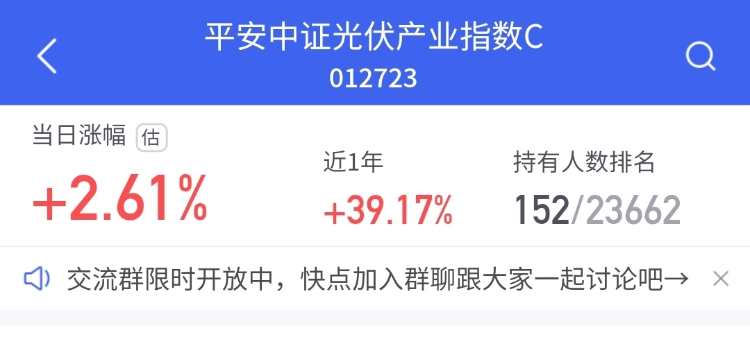 今天市场市场整体回暖了,这波板块涨幅亮眼的,光伏行业在政策引导下加速结构优化,今天估值也是大涨$平安中证光伏产业指数C$ 昨晚涨0.23%,今天估值大涨2.61%!
