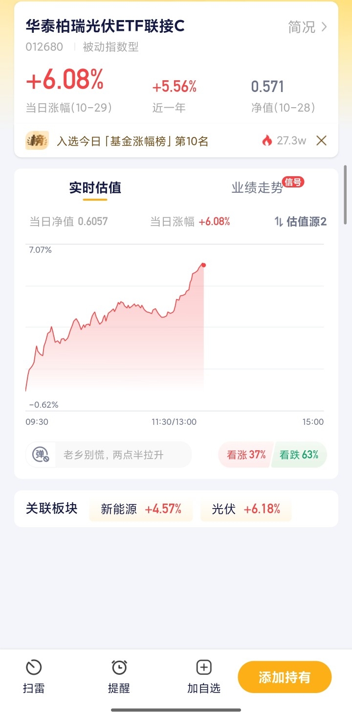 今天光伏板块比昨天像样点了,但还是没摆脱震荡,主要是资金没形成合力,大家都在观望。可行业里的好苗头真不少:国家出手“反内卷”,跟当年钢铁供给侧改革似的,就是要让价格稳住、产能合理,现在多晶硅价格已经反弹了,龙头公司盈利能力肯定能慢慢修复 。而且储能一体化成了新增长点,像光伏车棚、零碳园区都在落地,市场越来越大。我不敢乱选个股,就认准华泰柏瑞,它能覆盖赛道里的优质标的,风险分散了,心里也踏实。$华泰柏瑞光伏ETF联接C$