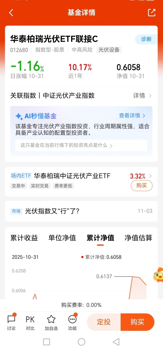 光伏行情最近“有看头”得很,今天也没让人失望。要是你觉得光伏行业有潜力,华泰柏瑞可以考虑一下。它专门投资光伏产业,行业周期属性强,属于中高风险基金。适合那些对光伏产业有点了解,想配置这类资产的朋友。大家投资的时候可得想清楚,自己能不能承受这个风险,别到时候后悔哦。#飞天茅台批发价跌破1700!酒价何时触底?#