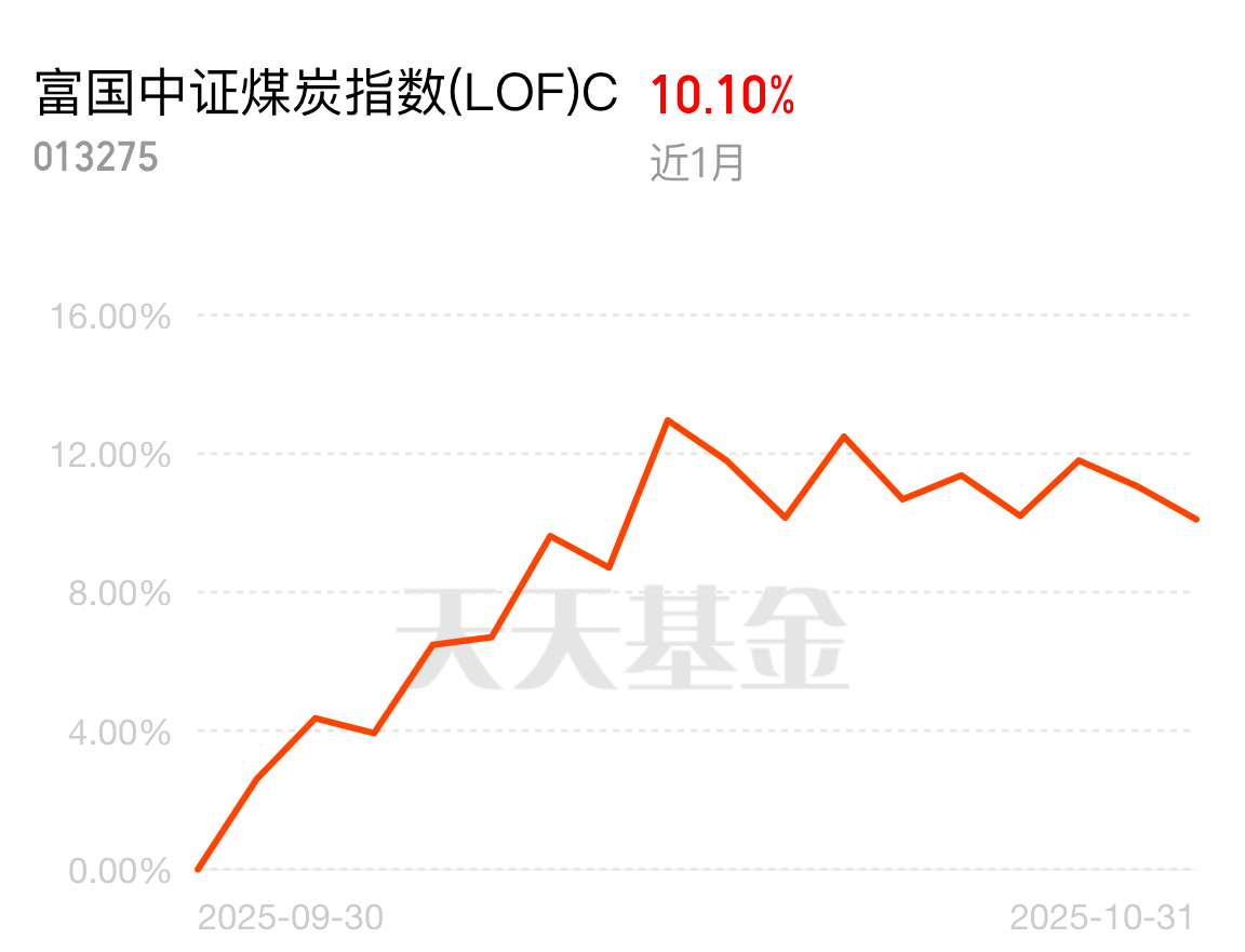 光伏涨得猛,我顺手配了点煤炭富国中证煤炭C近1个月涨了10%,跑赢一大片,还踩中