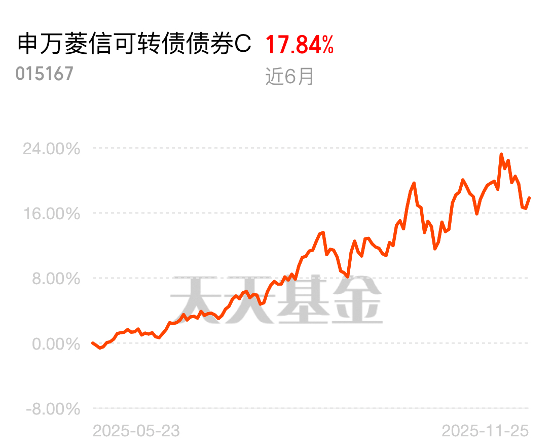市场震荡不休,想稳当赚钱又不想折腾,申万菱信可转债C值得关注。固收打底保安全,权益部分瞄准有色、电子这些大热板块,近6个月17.84%的业绩亮眼,控制风险的同时还能提收益。