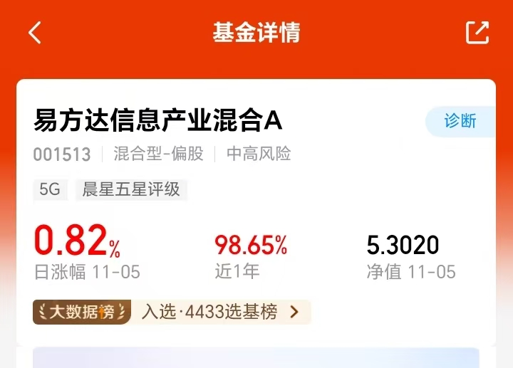 科技板块也是开始反弹了,之前我买的易方达全球精选近期竟然限购了,不过还好我留意到$易方达信息产业混合A(OTCFUND|001513)$这个,也是同一个基金经理操刀的,和全球精选的策略大体一致,额度也比较充足,看业绩也表现不错,今天我先小额建个仓了,后续看情况分批操作。