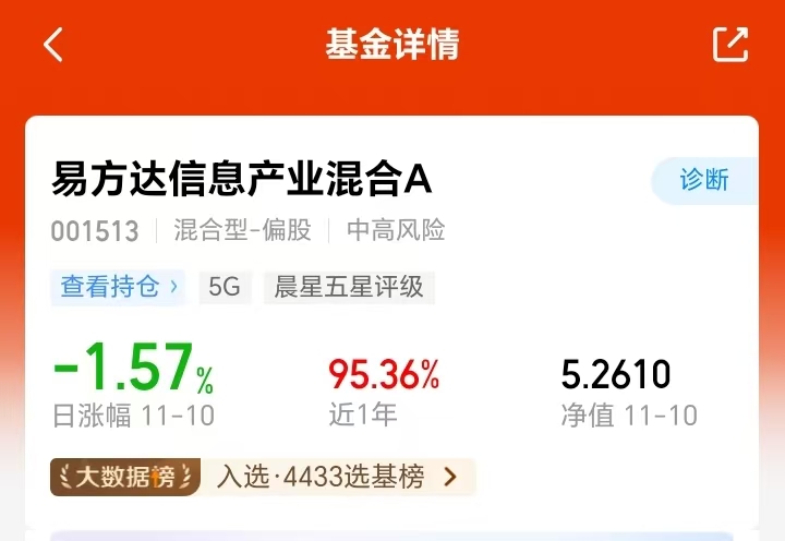 纠结呀!今日A股、港股双双高开低走,沪指勉强守住4000 点,市场情绪比较谨慎~ 隔夜美股延续反弹趋势,科技板块表现不错!之前入手的易方达全球精选突然限购了,正愁没替代,还好昨天发现了这个$易方达信息产业混合A(OTCFUND|001513)$,它是和全球成长精选同一个基金经理管理的,策略上大体一致,额度还充足,业绩表现也很亮眼,今天果断小额补仓先试水,后续再分批加仓,把握下科技后市的反弹机会~