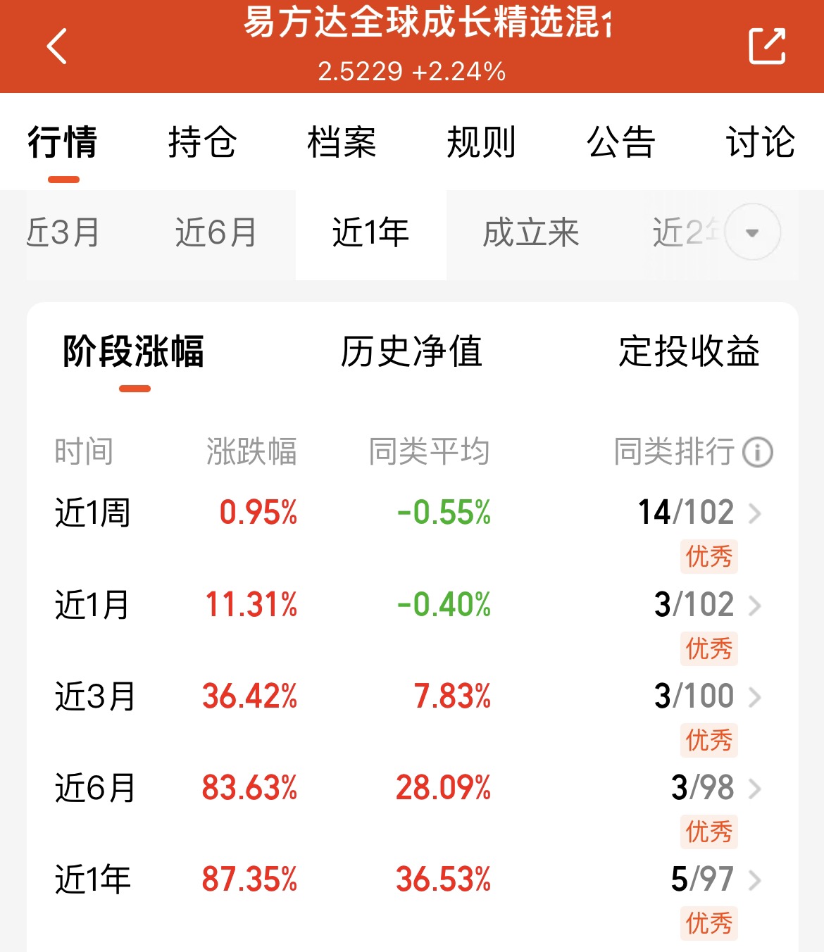 不过要论省心,还是同经理管理的$易方达全球成长精选混合(QDII)人民币A$ 更靠谱,它跨A股、港股、美股布局科技,震荡中既能抗跌又能跟上涨势,之前市场波动时多次跑赢大盘。可惜现在限额了,而信息产业混合算是不错的平替:既能延续科技赛道的布局,又能借助同一位经理的管理能力,两边的优势都能兼顾。