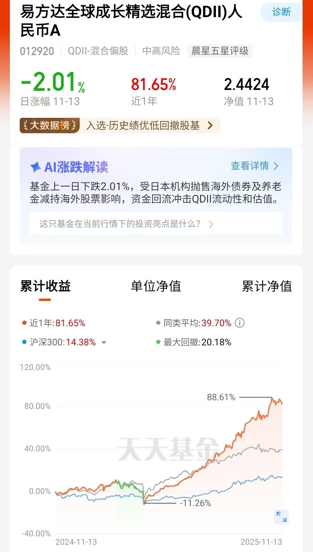 最近股市行情调整,但是美联储将继续降息趋势明显,全球科技板块将继续受益,其实不只是板块轮动,全球科技赛道也在轮动,A股美股轮动,所以布局科技要有全球眼光$易方达全球成长精选混合(QDII)人民币A(OTCFUND|012920)$就是布局全球科技的,通过全球范围调仓有效控制回撤呢。业绩更稳定。