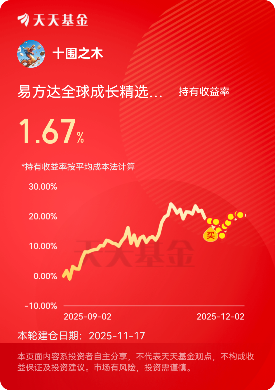 $易方达全球成长精选混合(QDII)人民币A$ #晒收益#