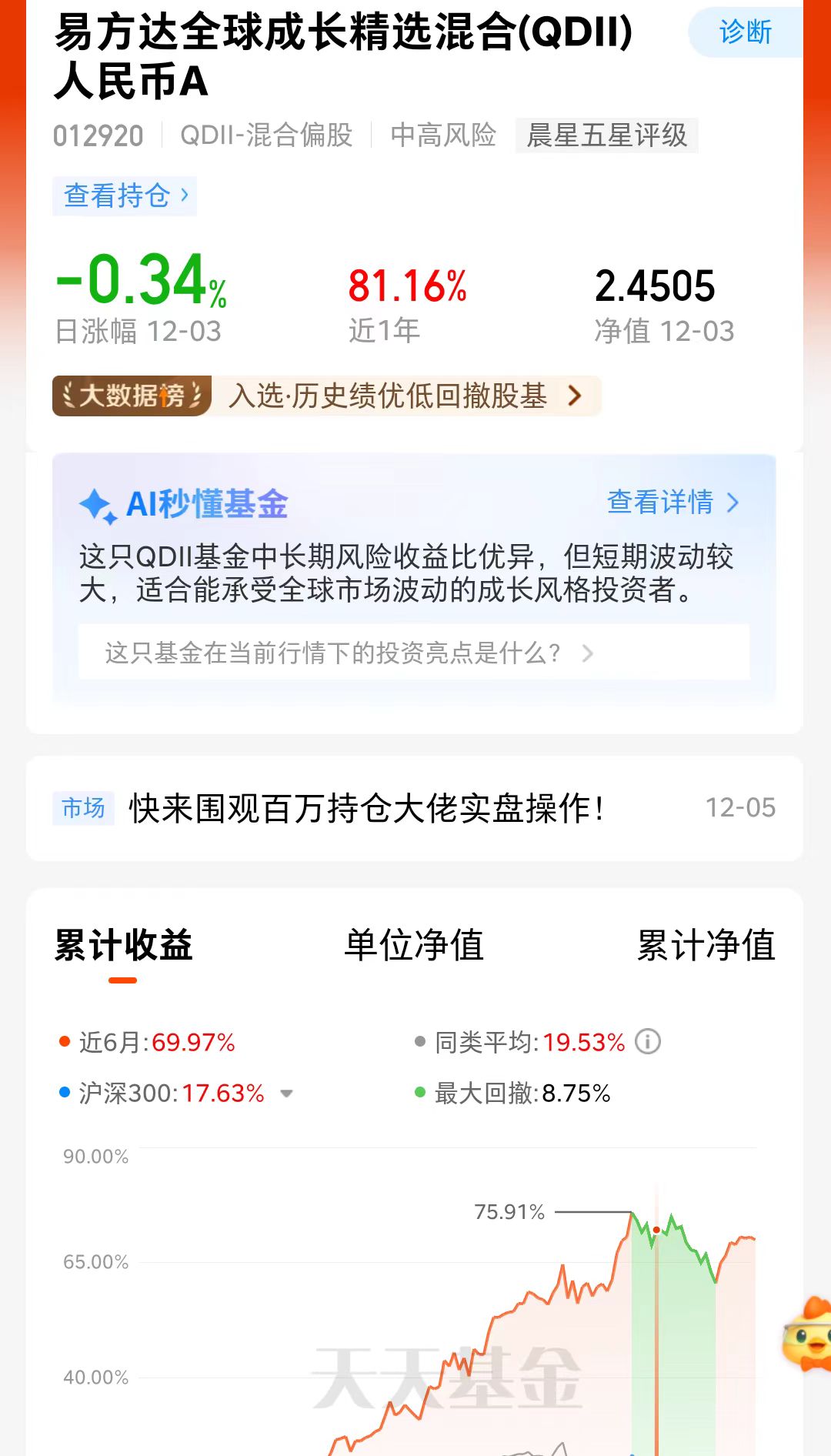 宝子们,科技板块回调后,开始反弹上涨了,我觉得要因科技板块长期没走完,海内外都有很大机会,抓住全球科技板块行情,继续低吸,我上车的是$易方达全球成长精选混合(QDII)人民币A(OTCFUND|012920)$,美联储降息预期增强,全球科技板块也将继续受益,这只基的基金经理通过全球范围调仓精准控制回撤,业绩优秀,持仓体验不错,静待反弹。