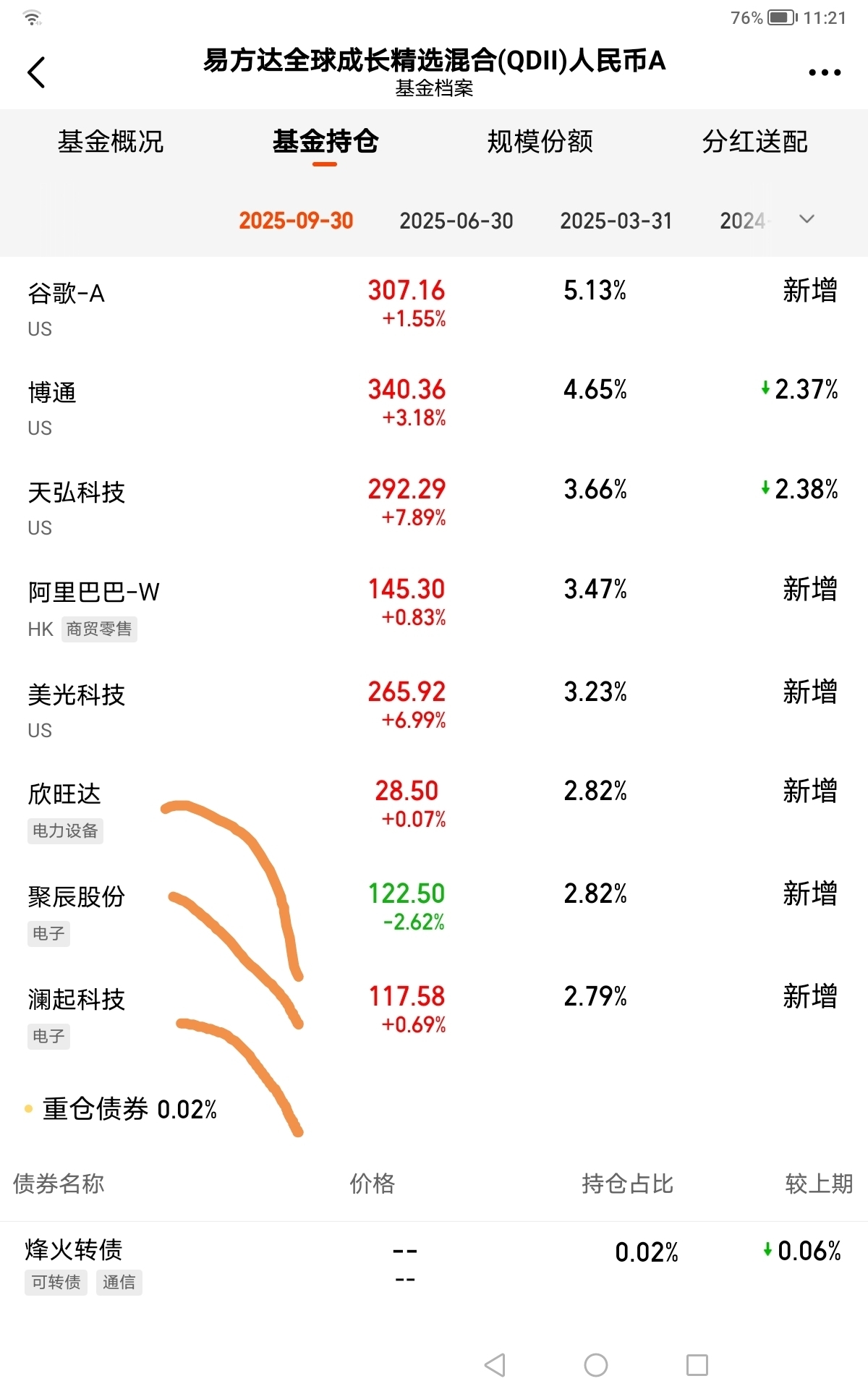 $易方达全球成长精选混合(QDII)人民币A$加了A股和港股,排名就下跌了。