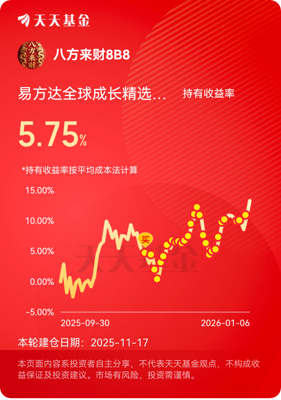 $易方达全球成长精选混合(QDII)人民币A$ #晒收益#