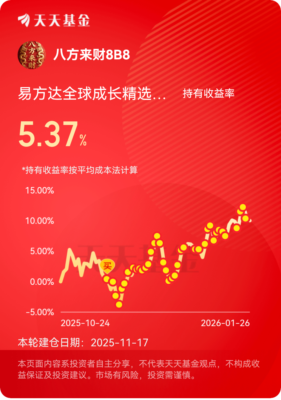 $易方达全球成长精选混合(QDII)人民币A$ #晒收益#