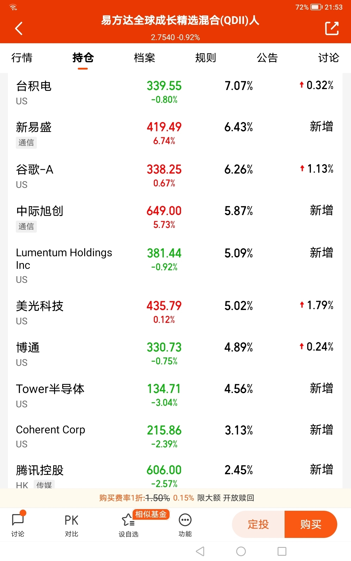 $易方达全球成长精选混合(QDII)人民币A[012920]$ 郑经理,不对啊,现在公布的是1月29日的净值,根据十大重仓股,怎么也应该涨0.3%左右,而不是大跌0.92%啊?
