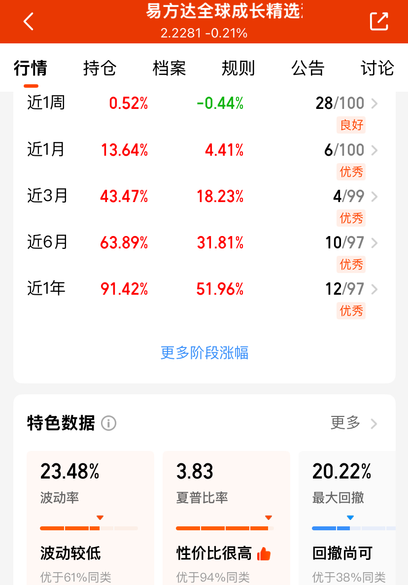今天股市行情给力,随着指数的拉升,整体做多情绪高涨,科技依旧是市场的主力军,放眼全球市场,其中$易方达全球成长精选混合(QDII)人民币C(OTCFUND|012922)$长期业绩稳健,年度涨幅高达91.42%,同时回撤控制的不错,这得益于基金持仓能力出众,配置眼光独到!$华夏成长混合(OTCFUND|000001)$#牛市旗手回归?券商板块异动拉升##固态电池最新突破:能量密度创新高#