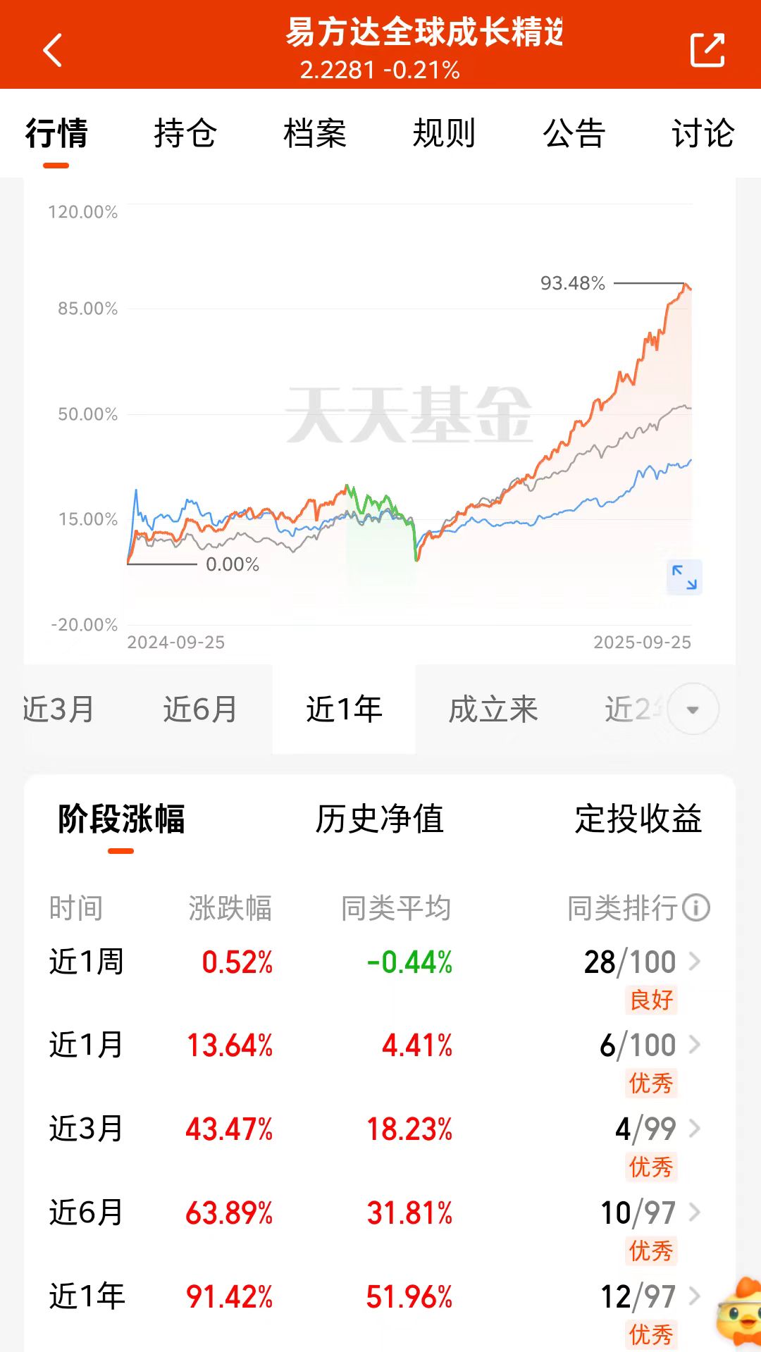 最近美丽国降息利好越来越明显了,美股大盘指数集体上涨,今天我们大A也集体上涨,科技板块弹性大,涨幅也是比较可观的。我关注了.$易方达全球成长精选混合(QDII)人民币C(OTCFUND|012922)$我发现他布局全球科技,基金经理通过全球范围内调仓,及时把握行情,有效控制回撤呢。大家也可以关注一下。