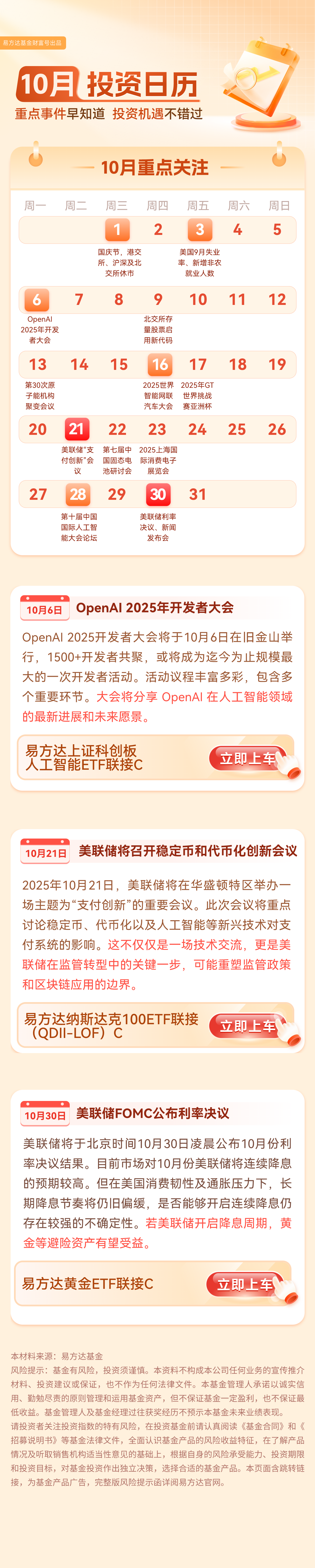 重点事件早知道,投资机遇不错过。十月份都有哪些重点事件值得关注?快来看看!