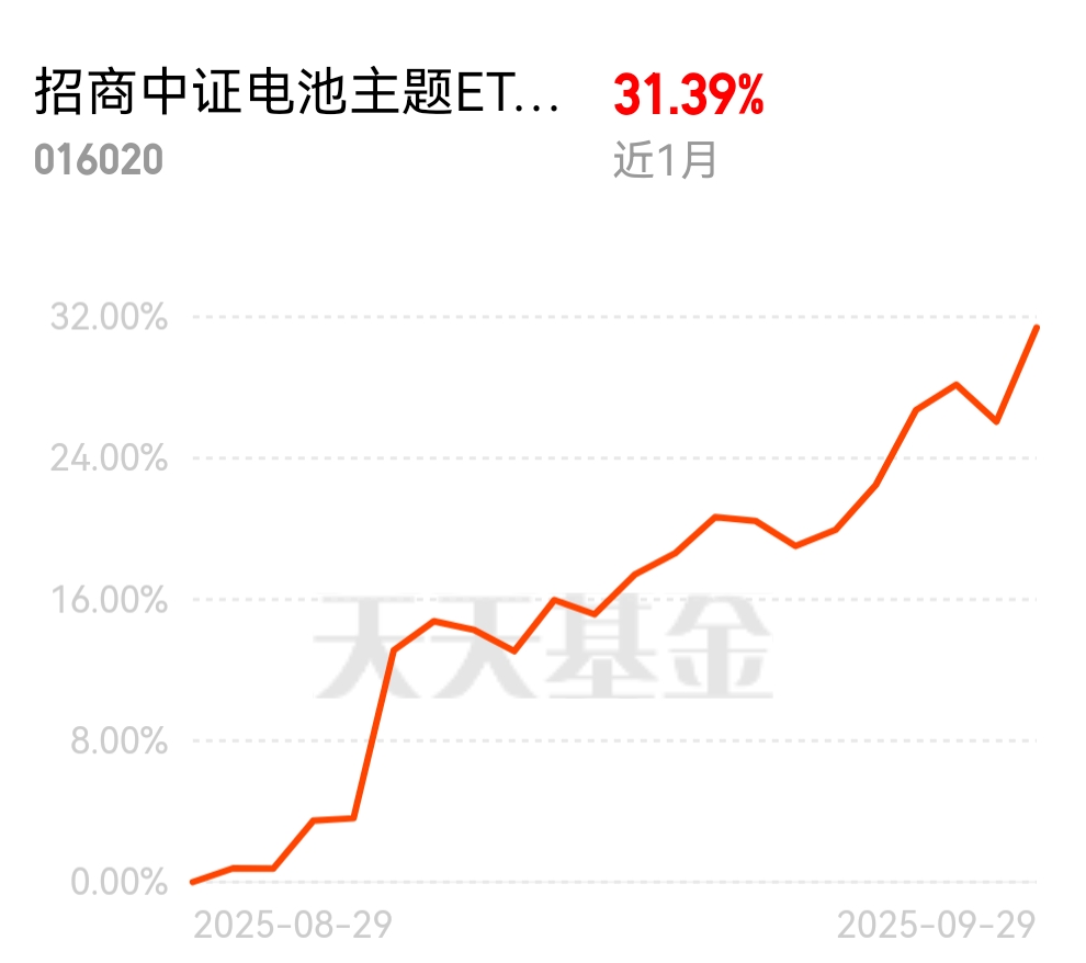 电池板块昨天行情火热,今天指数往上走。指数覆盖动力、储能电池领域,全产业链受益,招商中证电池主题ETF联接C近3个月61.57%,业绩很能打。