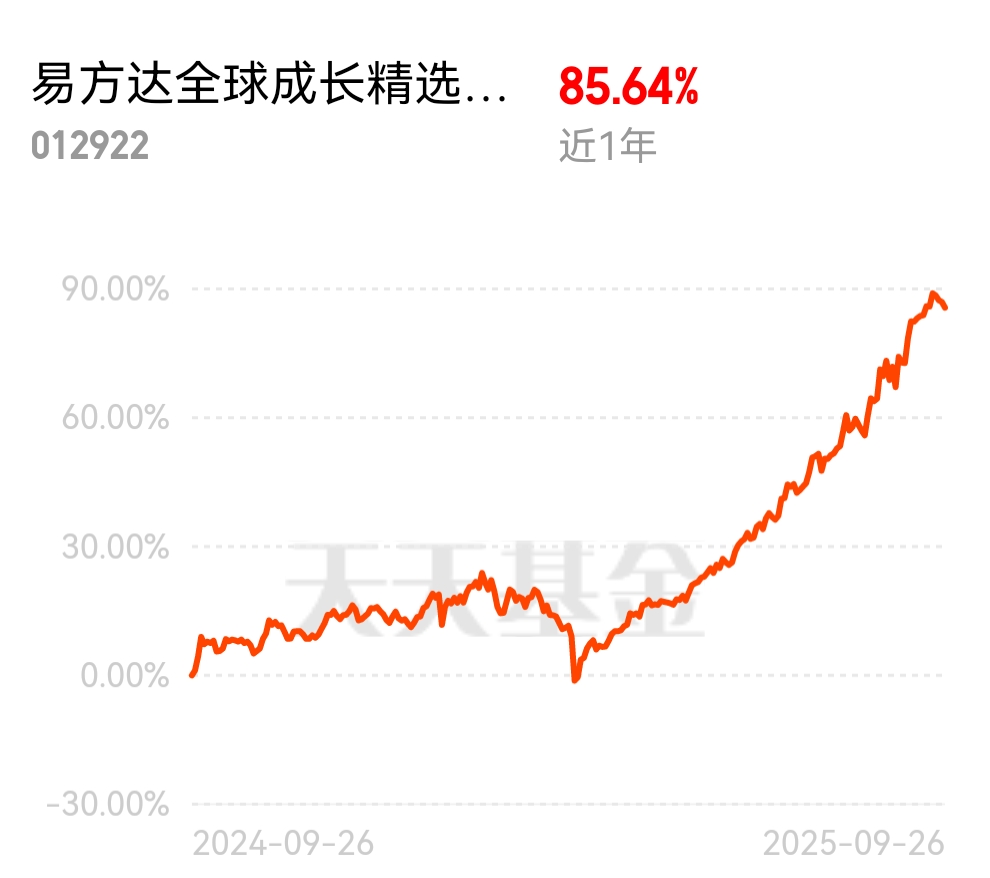 只不过估值高位,有调整风险,我觉得也需要对冲一下,这支$易方达全球成长精选混合(QDII)人民币C$ 目前持仓A股港股和美股,科技资产持续领涨,而A股部分资产在算力建设中不可或缺、港股的互联网巨头也比较受益AI应用落地,雨露均沾一下,也就能把握这轮行情同时,还能分散下风险了;