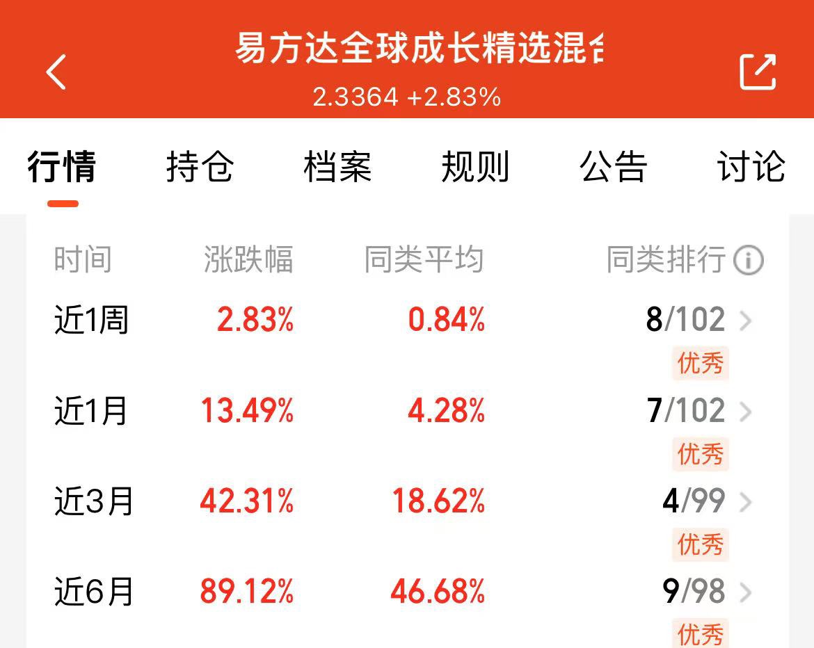 今天行情真心差,大盘跌得让人没脾气,但$易方达全球成长精选混合(QDII)人民币C$ 的长期实力还是经得住考验。看数据就知道,它近一年涨幅高达82.75%,远超不少同类基金。这得归功于基金经理郑希,从业12年多,管理这只基金以来累计回报也有25.11%,实力摆在那。