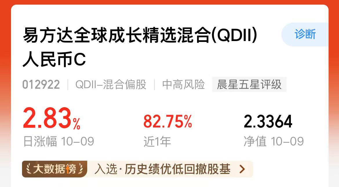 今天打开账户又是一片绿,上证指数跌了快2%,估计不少人和我一样有点懵。但聊到$易方达全球成长精选混合(QDII)人民币C$ ,心里还能稳点。