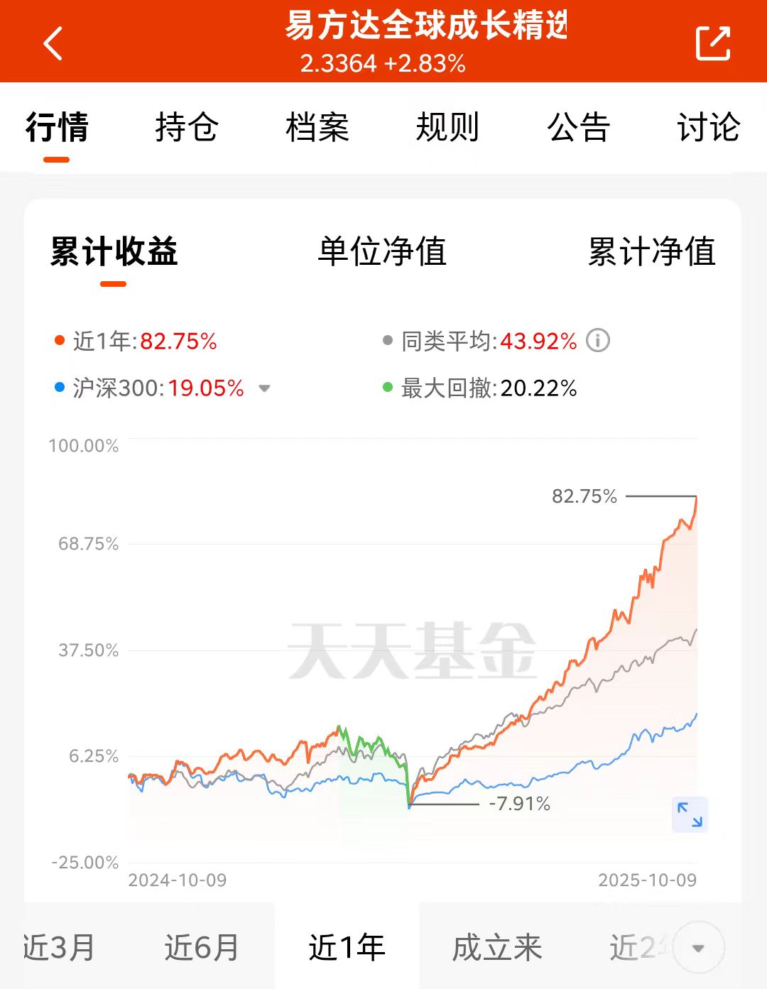 我发现这样一只可以全球投资科技产业的宝藏基!就是$易方达全球成长精选混合(QDII)人民币C(OTCFUND|012922)$基金经理在美中港三地游刃有余,科技行情启动以来几乎没有错过过,在我们国庆假期期间跑赢了美股和港股呢,近一年不仅翻倍、回撤也很小。他可以在全球范围调仓,也不用担心近期高位,基金经理调仓灵活且胜率高。