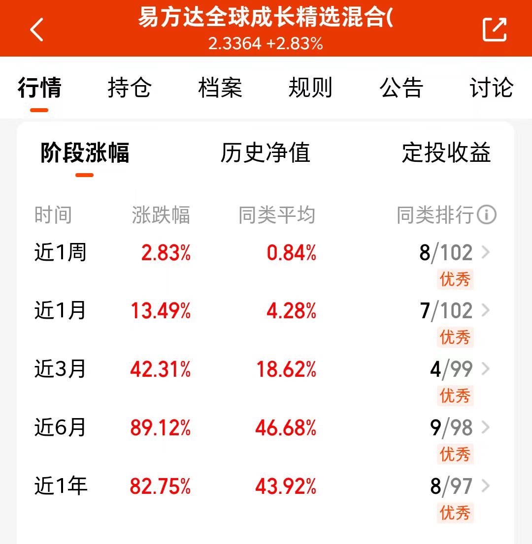 全球股市黑天鹅,普遍调整,单一赛道容易踏空,但是$易方达全球成长精选混合(QDII)人民币C(OTCFUND|012922)$是布局全球科技的,基金经理眼光独到,积极有效的全球范围内调仓,虽然这两天因为事件影响有点调整,但也许是上车良机,相信基金经理的调仓能力,调仓灵活胜率也比较高。